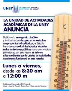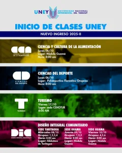 La Universidad Nacional Experimental del Yaracuy UNEY se complace en informar a toda la comunidad educativa sobre las fechas de inicio de clases para el